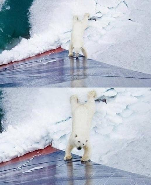 북극곰이 밀고 있던 것은 거대한 배인 것으로 알려졌다.