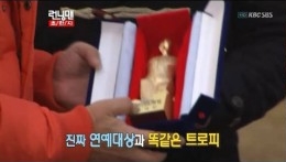 22일 오후 5시 방송된 SBS TV '설날특집 일요일이 좋다-런닝맨'에서는 지석진과 개리를 위한 연예대상이 준비됐다. 지난해 아무런 상도 수상하지 못한 두 사람을 위한 것. 시상자로는 배우 이범수와 홍수현이 나섰다. 개리와 지석진은 수상 소감을 말하려 했으나 하하의 방해로 수포로 돌아가 씁쓸함을 나타냈다.