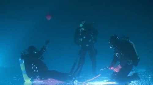 이 영상의 비밀은 잠수부들이 호수 속으로 들어가 얼음 표면에 거꾸로 선 모습을 뒤집어 촬영했기 때문이다. 23일 오후 4시 현재 이 동영상은 약 325만명이 클릭했다.(사진=유튜브)