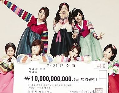 소속사 코어콘텐츠미디어가 공개한 사진 속 티아라는 한복을 곱게 차려 입고, 100억원이 적힌 모형 자기앞 수표 앞에서 대한민국 국민 모두가 부자 되기를 희망하는 새해 인사를 전했다.