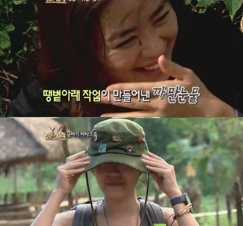 야자수 입을 따는 과정에서 김나영을 어깨위에 태우는 등 고된 작업을 하던 김주희는 김나영과 잠시 휴식을 취했다.