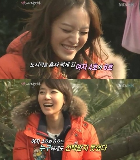 24일 방송된 SBS '스타애정촌-짝'에 출연한 가수 김재경과 레이싱모델 이수경은 매력 어필에도 불구 남자출연자들의 선택을 받지 못해 홀로 도시락을 먹어야 했다.