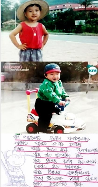 이 사진은 과거 SBS TV‘진실게임’ 방송 화면을 캡처한 것으로 이승기의 숙모가 작성한 육아일기로 알려졌다.
