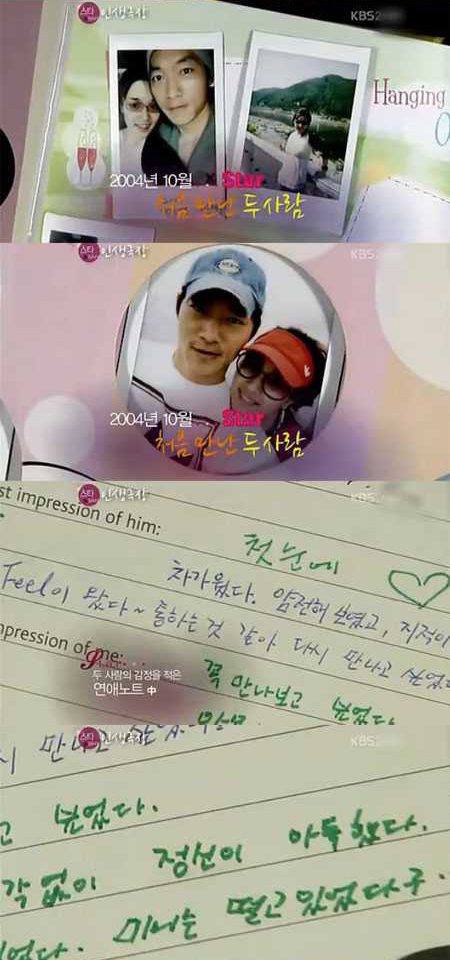 이날 방송에서 공개한 연애노트에는 다정한 포즈로 두 사람이 함께 찍은 플라로이드 사진과 연애시절 느꼈던 애틋한 감정들이 담겨있다.