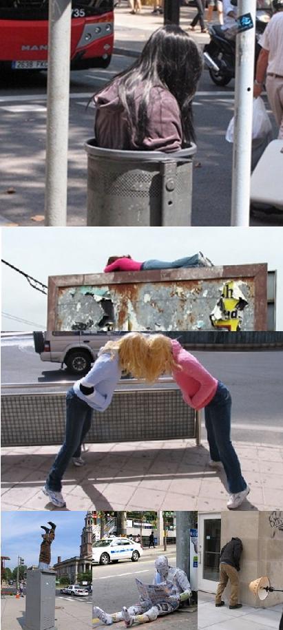 거리의 설치 예술가 마크 젠킨스(Mark Jenkins. 미국)의 작품이 온라인상에서 '사람인 줄 알았어'라는 제목으로 화제다.