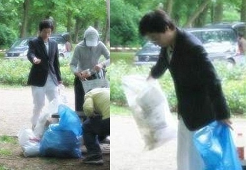 이 사진은 헤어스타일과 의상 등으로 미뤄볼 때 지난 2006년 SBS ‘X맨(엑스맨)’ 촬영으로 독일을 방문했을 당시 포착된 모습으로 추정된다. 유재석은 검은색 재킷에 하얀 바지를 입고 공원에 있는 쓰레기봉투를 손수 치우는 모습이 카메라에 포착됐다.