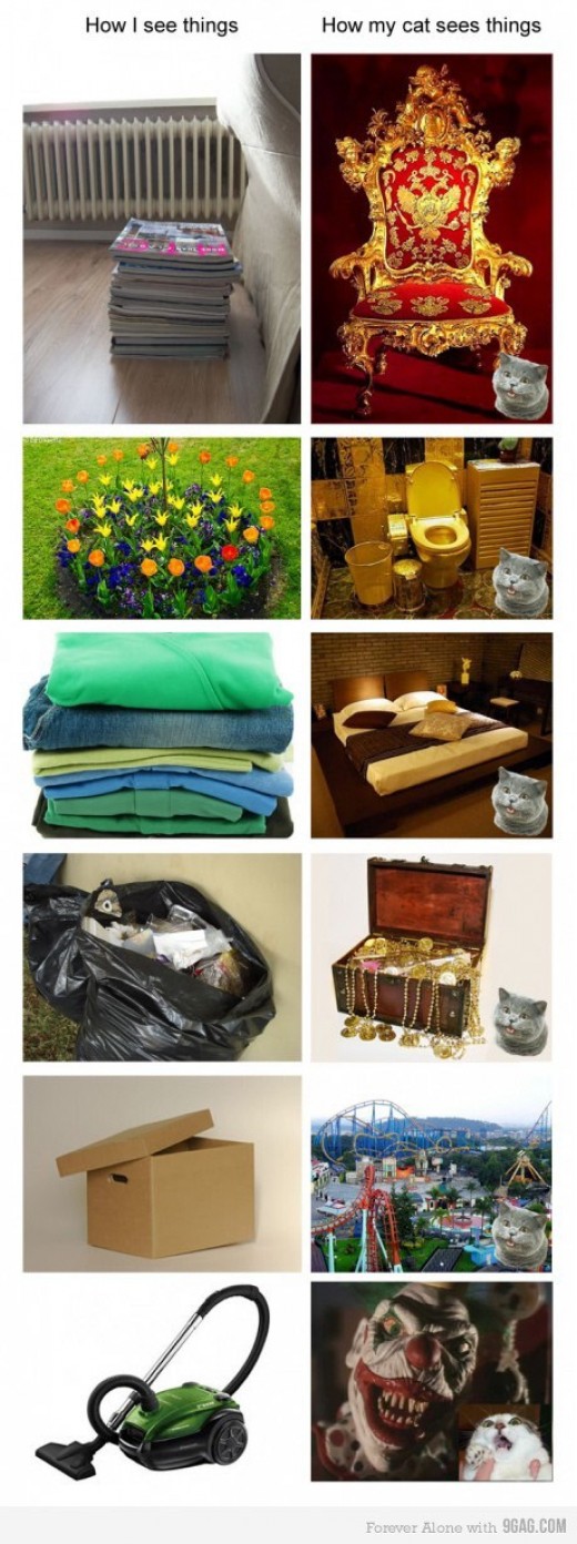최근 해외 온라인 유머 커뮤니티에는 '고양이가 바라본 세상'과 우리가 바라본 세상을 비교하는 게시물이 올라왔다.