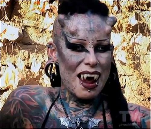 '살아 있는 뱀파이어'라고 불리우는 여성은 멕시코 출신의 35세 마리아 호세 크리스테르나로 이마에 티타늄을 넣어 만든 뿔, 옆 쪽으로 밀어버린 머리까지 대략 몸 98%에 새긴 문신들, 온갖 종류의 피어싱, 날카로운 송곳니까지 보는 이들로 하여금 경악을 하게 했다.