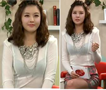 그녀가 이날 스마트 폰 tv 방송에서 입은 옷은 흰색 시스루 의상으로 안에 입은 검은 색 속옷이 그대로 드러나는 의상이었다.