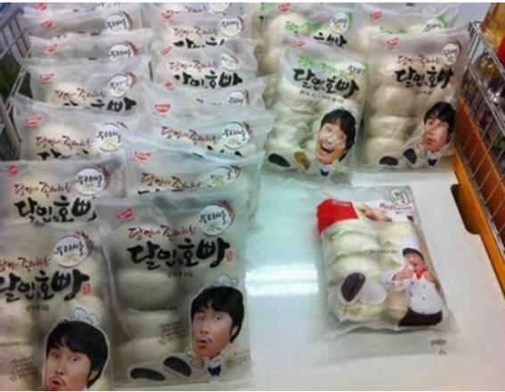공개된 사진은 정형돈의 얼굴이 그려진 '도니호빵'과 개그맨 김병만이 모델로 등장한 '달인호빵'을 진열해 둔 것을 한유라 작가가 직접 촬영한 것이다.