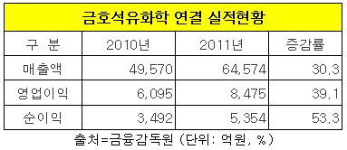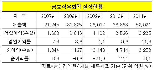3일 금융감독원 자료에 따르면 금호석유화학은 지난해 매출액 5조3천억원, 영업이익 6천200억원을 달성해 사상 최대 실적을 올렸다.
