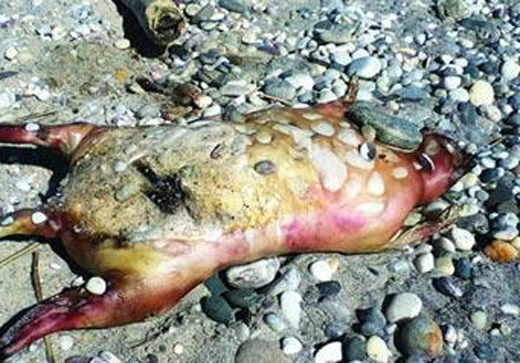 해양생물 보호단체 전문가는 해변 괴생명체가 죽은 너구리일 가능성이 있다고 전한 것으로 알려졌다.