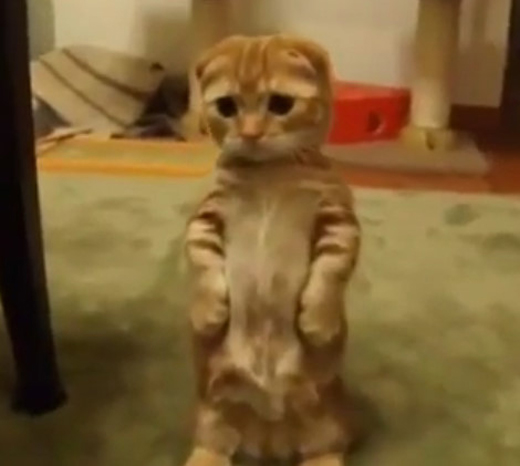 이 영상속 고양이는 장난감을 가지고 놀면서도 두 다리로 서서 ‘우아한’ 자세와 포즈를 취하고 있다.