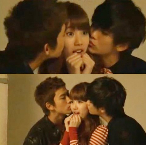 해당 영상은 지난해 방송된 KBS 드라마 ‘드림하이1’포스터 촬영을 담은 것으로 김수현과 옥택연이 수지의 볼에 뽀뽀하는 장면이 담겨있다.