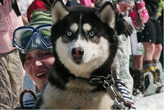 사진을 살펴보면 개의 주인은 즐거운 듯 보이지만 개의 표정은 놀란듯한 표정이다.