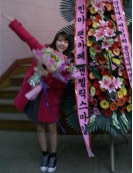 민아는 지난 4일 자신의 트위터에 “어제 졸업식을 했다. 내가 가장 좋아하는 코트를 입고 고등학교 입학을 했었는데 마무리도 이 코트로 장식하는군. 오늘 하루는 왠지 교복이 벗기 싫었다. 이제 더 멋진 날들을 위해 준비해야겠다”는 글과 함께 자신의 사진을 게재했다.