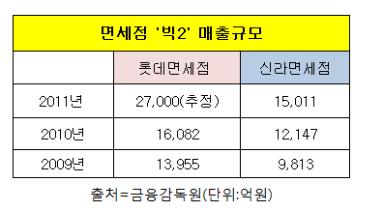 앞서 롯데면세점은 2009년 1조3천955억원, 2010년 1조6천82억원의 매출을 기록했다.