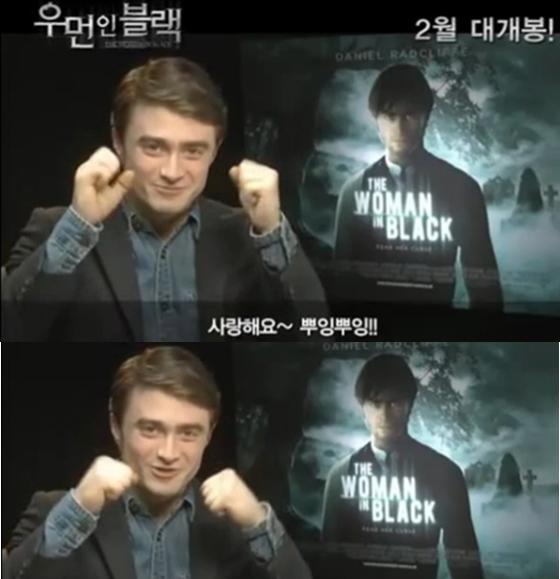 다니엘 래트클리프는 최근 최근 영화 ‘우먼 인 블랙’ 홍보를 위해 한국 팬들에게 영상으로 인사를 전했다.