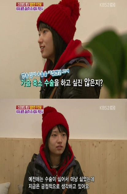 박은나 씨는 "미용이 아닌 건강을 고려해 가슴축소수술에도 긍정적으로 생각하고 있다"고 전했다.