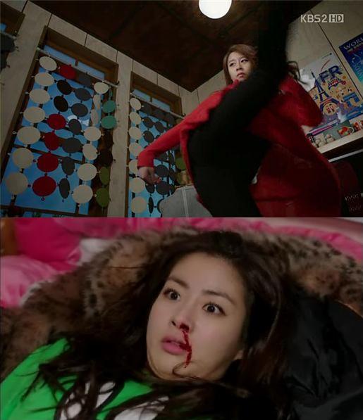머리채를 잡고 있던 해성은 리안의 강력한 돌려차기 한 방에 쓰러졌다. 리안의 돌려차기에 해성은 코피를 쏟았다.