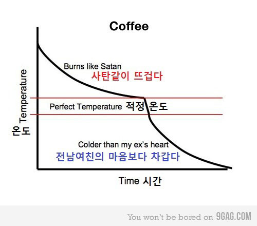이 커피 온도 그래프는 적절한 비유로 누리꾼들의 공감을 사고 있다.