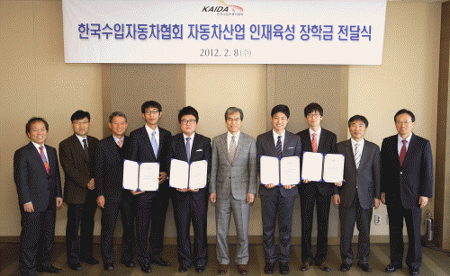 한국수입자동차협회(회장 박동훈)는 지난 8일 서울 중구 서울프라자호텔에서 ‘KAIDA 자동차산업 인재육성 프로그램’의 일환으로 국내 3개 자동차공학 대학원(국민대, 연세대, 한양대) 대학원생 5명에게 장학금을 전달했다.