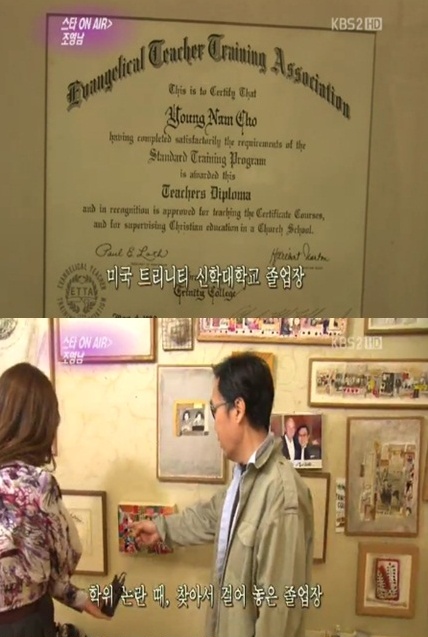 집안 곳곳에 걸린 여러 사진들 중 하나의 졸업장이 걸려있는 것이 제작진들의 눈에 띠었다. 바로 조영남의 미국 트리니티 신학대학교 졸업장이었던 것.