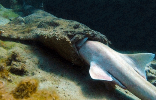 상어 잡아먹는 상어 사진이 공개됐다. 4일 뉴사이언티스트 등을 통해 공개된 이 '상어 잡아먹는 상어' 사진은 호주 연구회(ARCC) 소속 연구팀이 촬영한 사진으로, 지난해 8월 호주 북동해안 세계최대 산호초 지역인 그레이트배리어리프 탐사 중 우연히 목격한 장면이다.