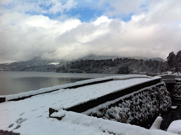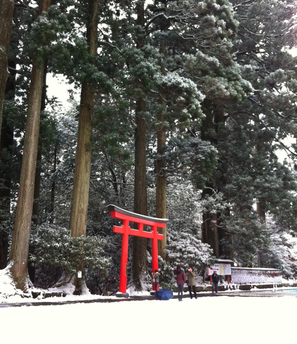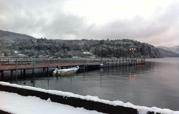 마지막 일정은 화산과 온천으로 유명한 하코네. 갑작스레 쏟아지는 눈으로 인해 아시노코를 향하는 길의 운치가 예사롭지 않다.