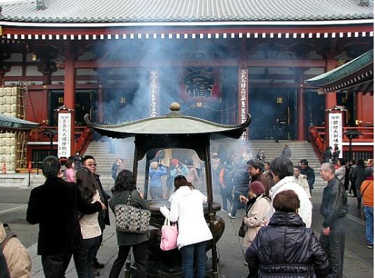 일정의 시작은 도심 전철을 타고 아사쿠사를 찾아가는 것. 도착한 아사쿠사 전철역 앞에는 인력거 여러대가 눈에 띈다. 길게 늘어선 기념품과 먹거리 등을 파는 상점을 따라 300m가량을 쭉 걷다보면 센소지라는 거대한 절이 모습을 드러낸다. 방문객들이 경쟁하듯 향을 피워대는 바람에 넓은 야외임에도 머릿속이 아득해질 지경. 가족의 건강을 기원한 후 서둘러 긴자로 고고~.