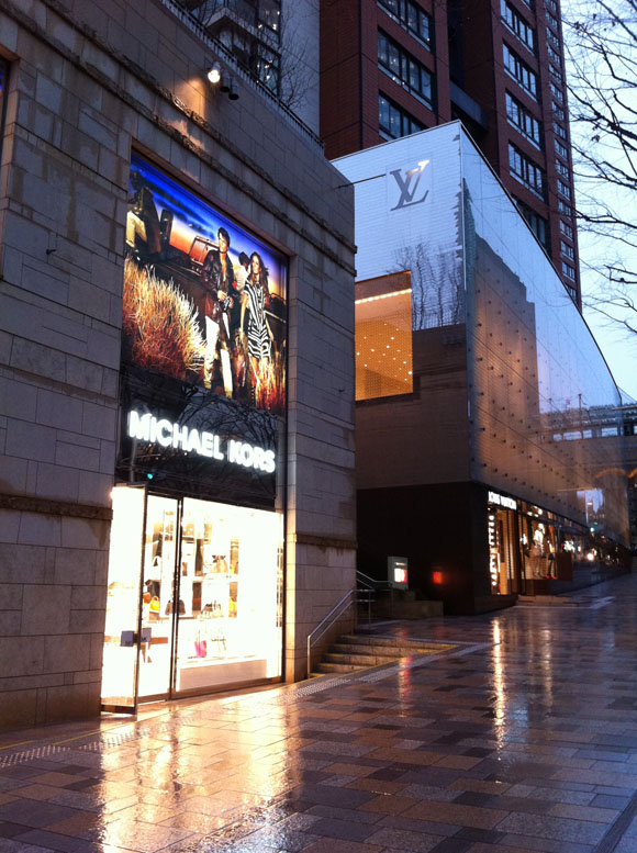 롯본기역 출구를 나서자 가장 먼저 눈에 띄는 것은 마망 (거미를 브론즈로 형상화 한 루이스 부르주아의 작품)과 54층의 초고층 빌딩 모리 타워. 여성들의 심장을 뛰게 하는 수많은 명품샵들이 엄청난 규모로 늘어서 있다. 일반 백화점이나 면세점의 규모에 익숙해선지 매장으로 선뜩 들어서기조차 쉽지 않은 위용이다.