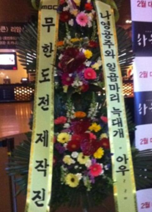 MBC '무한도전' 제작진이 이나영에게 보낸 재치넘치는 화환이 화제가 되고 있다.