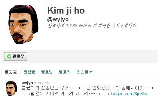 한편 신보라는 최근 KBS 개그 콘서트 신설 프로인 ‘용감한 녀석들’에서 ‘기다려’라는 노래로 폭발적인 가창력을 뽐내 화제가 되고 있다. (사진-개그맨 김지호 트위터)
