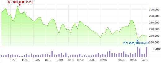 실제 이마트 주가는 최근 거래 6일 사이 9%나 빠졌다. 15일 이마트 주가는 전 거래일 대비 2천원(-0.77%) 하락한 25만8천원을 기록하며 장을 마감했다. 지난 9일에는 52주 최저가인 25만2천500원으로 고꾸라졌었다. 특히 대형 유통주 중 가장 큰 폭의 하락이여서 우려를 사기도 했다.