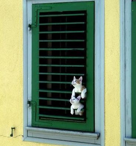 사진에는 창문틀 사이로 고양이 두 마리가 고개를 내밀고 몸이 조금 끼어 있는 모습이다. 게시자가 사진과 함께 “그러게 고등어인 것 같다”고 적어놔 웃음을 더했다.