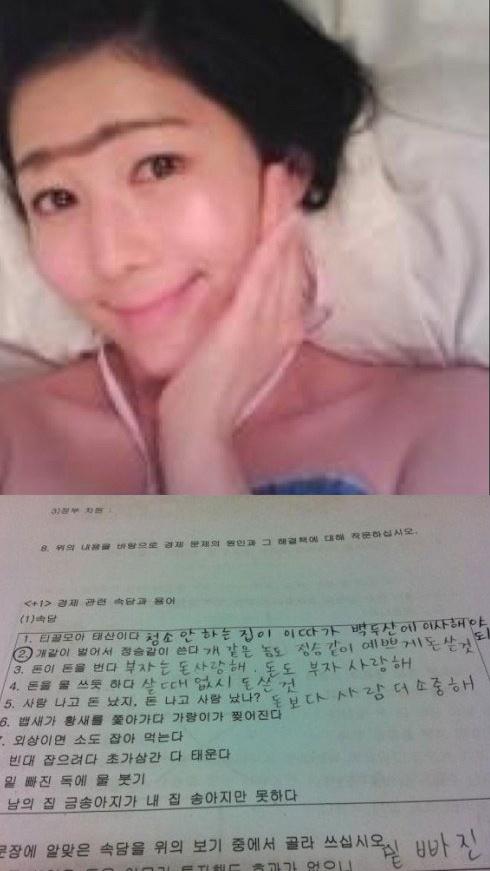 이후 사유리는 트위터 글에 사진 한 장을 첨부해 눈길을 끌었는데 이 사진에는 그가 말한 한국어 숙제인 듯 흔히 알고 있는 속담들이 적혀져 있고 그 뜻이 사유리의 방식대로 풀이돼 있었다.