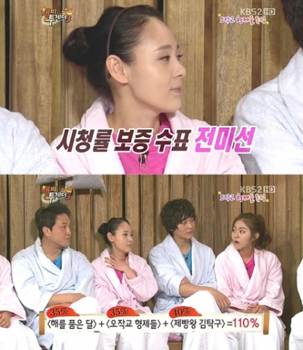 이날 함께 출연한 최정윤은 “우리끼리 미선언니 다음 작품 따라 들어가자고 말하곤 한다. 정보 좀 달라고 한다.”고 시청률 110% 전미선에 대해 인정해 눈길을 끌었다.