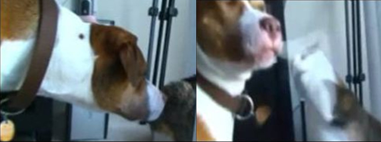 특히 개는 자신이 지금 무슨일을 당하고 있는지 모를 만큼 따귀를 맞아 어안이 벙벙해진 표정이 고스란히 담겨 네티즌들의 웃음을 자아내고 있다. (사진-온라인 커뮤니티 동영상 캡처)