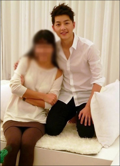 공개된 사진에는 송중기가 일반인 여성과 함께 다정하게 사진을 찍는 모습이다.