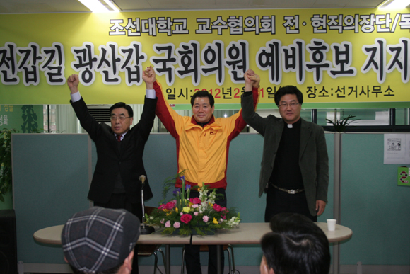 조선대학교 교수들이 21일 민주통합당 전갑길 광산갑 국회의원 예비후보 지지를 선언했다.