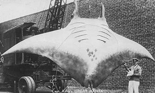 이 괴물 가오리는 1930년대 미국 뉴저지 인근 해역에서 조업 중이던 어선의 닻줄에 걸렸다.