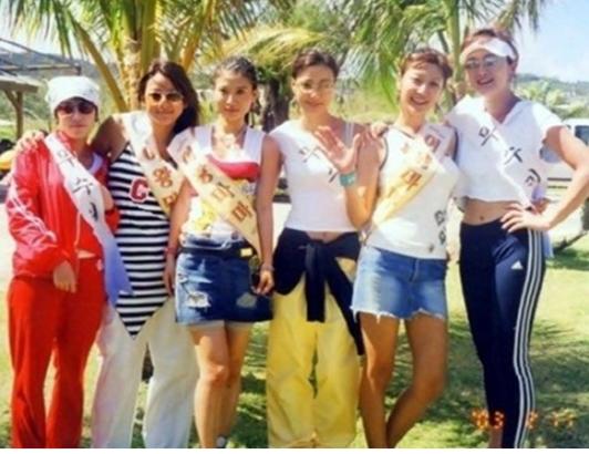 사진에는 이승연, 변정수, 손태영, 황보, 이효리 등이 짧은 나시와 트레이닝 복을 입고 있는 모습이다.