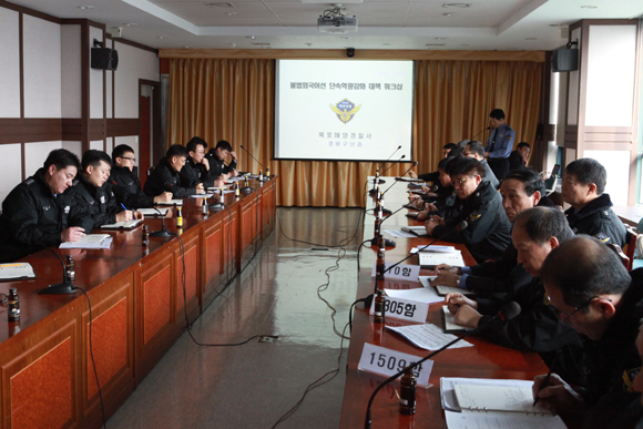 목포해양경찰서(서장 강성희)는 22일 본서 회의실에서 서장, 경비구난과장, 함정장, 검문검색팀장, 통역요원 등 30명이 참석한 가운데 불법 외국어선 단속역량 강화를 위한 워크숍을 개최했다.