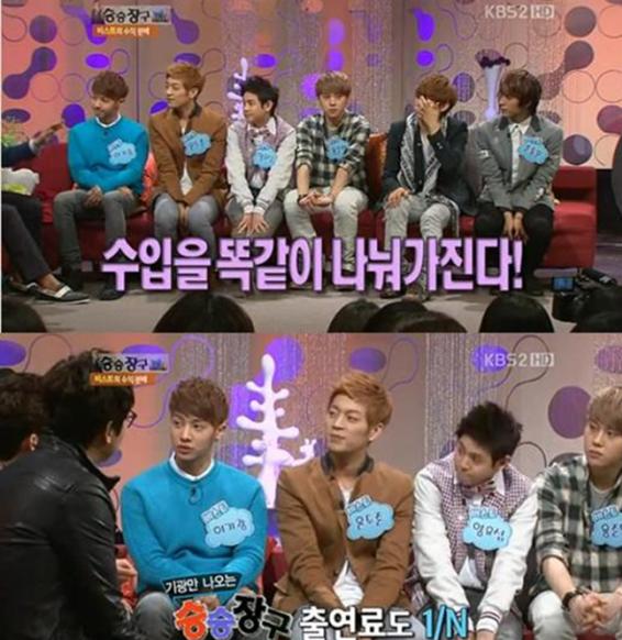 21일 방송된 KBS '김승우의 승승장구'에서는 비스트가 출연해 수입 분배 방식을 공개했다.