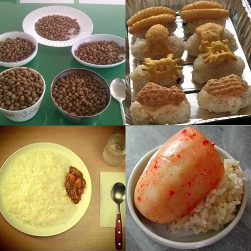 여기에는 온갖 그릇에 개사료로 추정되는 것들이 한 가득 담겨 있는가 하면 새우, 문어, 꽃게, 오징어 등 온갖 해물맛 과자가 얹혀진 초밥, 둥글고 큰 접시에 밥과 밥의 10분의 1 정도인 카레, 밥 위를 덮어버린 엄청난 크기의 무김치 등 다양해 웃음을 자아낸다.