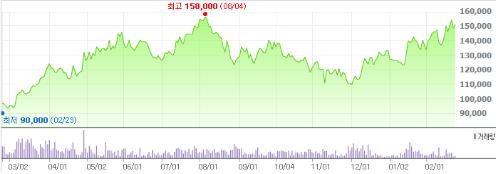 상장한지 1년 반 가량이 지난 현재 현대홈쇼핑 주식은 15만원대에 안착했고 평가액도 어마어마하게 불어났다.