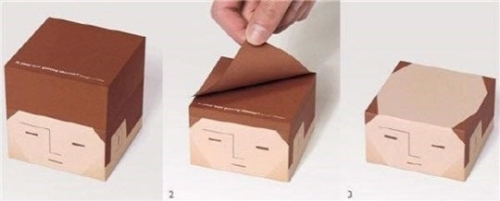 '쓸수록 미안해지는 포스트잇’ 사진을 보면 포스트잇에 사람얼굴이 그려져 있고, 쓰면 쓸수록 얼굴은 대머리가 되어간다.
