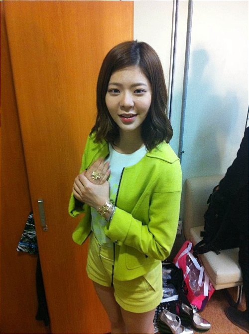 공개된 장재인 패셔니스타 사진 속 장재인은 연두색 재킷에 노란 핫팬츠를 입고 골드컬러의 반지와 팔찌를 매치해 세련미를 뽐냈다.