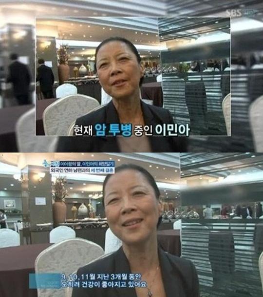 24일 방송된 SBS ‘배기완 최영아 조형기의 좋은 아침’에 출연한 이민아는 암투병 사실을 고백하며 “병원에서 거의 가망이 없다고 얘기했다”고 전했다.