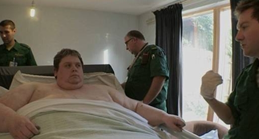 매일 핫도그, 샌드위치 초콜릿, 케이크, 비스킷 등 고칼로리를 섭취하며 누워서 하루 대부분의 시간을 보낸다. 그로인해 20년 넘게 여자친구가 없었던 마틴은 최근 큰 마음을 먹고 다이어트를 하기로 결심했다고 한다.(가장 뚱뚱한 남자 출처=유투브 화면 캡처)
